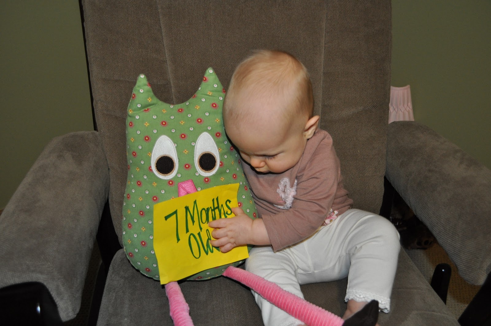 It is crazy to think that Kate is SEVEN months old! So many people have told us that your kids will grow up in a blink of an eye. We enjoy every minute we get with her. Her new thing is to cough for attention. As soon as you look at her, she starts smiling and giggling.