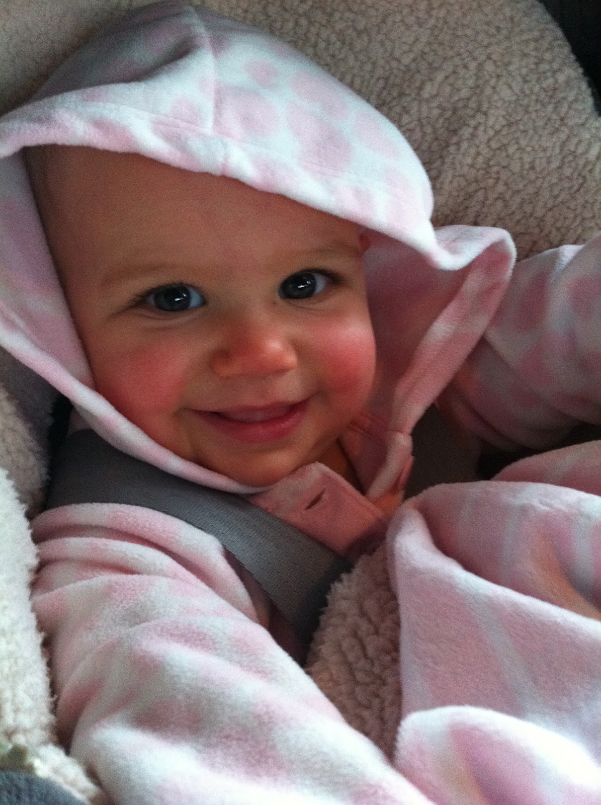 Aunt Lois and Cousin Roger stopped by into the evening. They were so sweet! They brought me this really cool picnic basket that I absolutely love to play with. It keeps me entertained for hours. Unfortunately, we left Grandma's house early so I could go to the doctor. Good thing we did, as I had an ear infection that needed to be treated. Aunt Lois made Mommy and Daddy a very nice bag of treats and food to keep them full on the drive back.